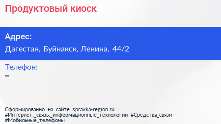 Продуктовый киоск по адресу Дагестан, Буйнакск, Ленина, 44/2 в дальнейшем Организация, размещена в следующих категориях: