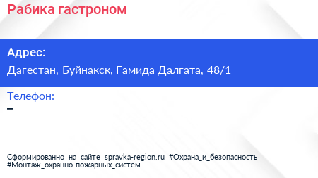 Рабика, гастроном по адресу Дагестан, Буйнакск, Гамида Далгата, 48/1 в дальнейшем Организация, размещена в следующих категориях: