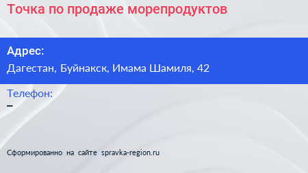Точка по продаже морепродуктов по адресу Дагестан, Буйнакск, Имама Шамиля, 42 в дальнейшем Организация, размещена в следующих категориях: