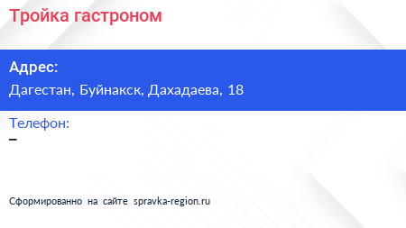 Тройка, гастроном по адресу Дагестан, Буйнакск, Дахадаева, 18 в дальнейшем Организация, размещена в следующих категориях: