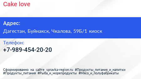 Cake love по адресу Дагестан, Буйнакск, Чкалова, 59Б/1 киоск в дальнейшем Организация, размещена в следующих категориях: