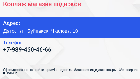 Коллаж, магазин подарков по адресу Дагестан, Буйнакск, Чкалова, 10 в дальнейшем Организация, размещена в следующих категориях: