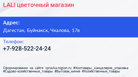 LALI, цветочный магазин по адресу Дагестан, Буйнакск, Чкалова, 17в в дальнейшем Организация, размещена в следующих категориях: