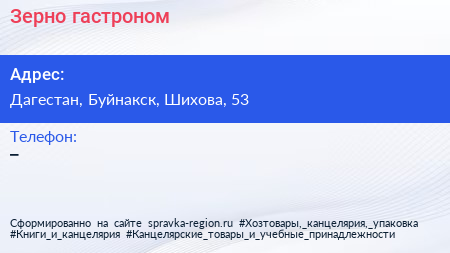 Зерно, гастроном по адресу Дагестан, Буйнакск, Шихова, 53 в дальнейшем Организация, размещена в следующих категориях: