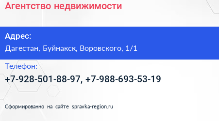 Агентство недвижимости по адресу Дагестан, Буйнакск, Воровского, 1/1 в дальнейшем Организация, размещена в следующих категориях: