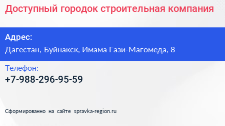 Доступный городок, строительная компания по адресу Дагестан, Буйнакск, Имама Гази-Магомеда, 8 в дальнейшем Организация, размещена в следующих категориях: