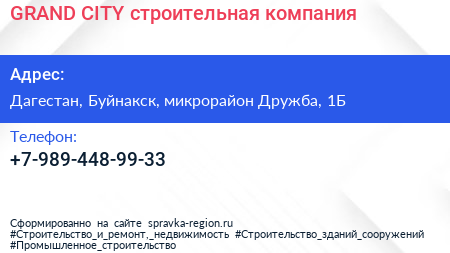 GRAND CITY, строительная компания по адресу Дагестан, Буйнакск, микрорайон Дружба, 1Б в дальнейшем Организация, размещена в следующих категориях: