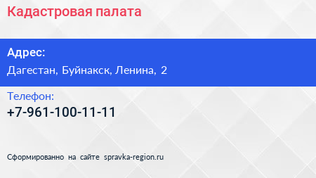 Кадастровая палата по адресу Дагестан, Буйнакск, Ленина, 2 в дальнейшем Организация, размещена в следующих категориях:
