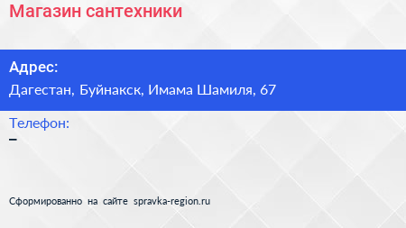 Магазин сантехники по адресу Дагестан, Буйнакск, Имама Шамиля, 67 в дальнейшем Организация, размещена в следующих категориях: