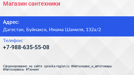 Магазин сантехники по адресу Дагестан, Буйнакск, Имама Шамиля, 132а/2 в дальнейшем Организация, размещена в следующих категориях: