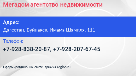 Мегадом, агентство недвижимости по адресу Дагестан, Буйнакск, Имама Шамиля, 111 в дальнейшем Организация, размещена в следующих категориях: