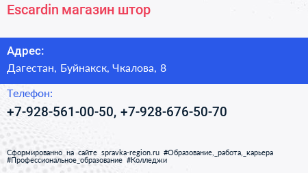 Escardin, магазин штор по адресу Дагестан, Буйнакск, Чкалова, 8 в дальнейшем Организация, размещена в следующих категориях: