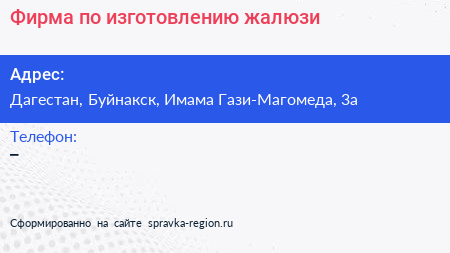Фирма по изготовлению жалюзи по адресу Дагестан, Буйнакск, Имама Гази-Магомеда, 3а в дальнейшем Организация, размещена в следующих категориях: