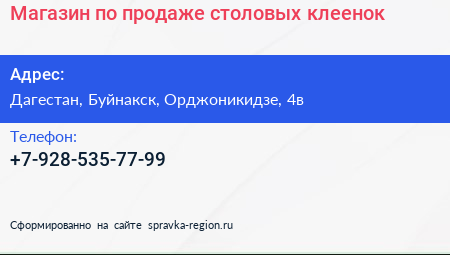 Магазин по продаже столовых клеенок по адресу Дагестан, Буйнакск, Орджоникидзе, 4в в дальнейшем Организация, размещена в следующих категориях:
