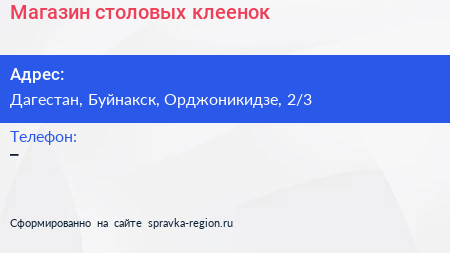 Магазин столовых клеенок по адресу Дагестан, Буйнакск, Орджоникидзе, 2/3 в дальнейшем Организация, размещена в следующих категориях: