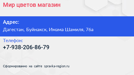 Мир цветов, магазин по адресу Дагестан, Буйнакск, Имама Шамиля, 76а в дальнейшем Организация, размещена в следующих категориях: