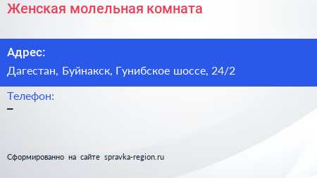 Женская молельная комната по адресу Дагестан, Буйнакск, Гунибское шоссе, 24/2 в дальнейшем Организация, размещена в следующих категориях: