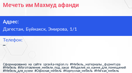 Мечеть им. Махмуд афанди по адресу Дагестан, Буйнакск, Эмирова, 1/1 в дальнейшем Организация, размещена в следующих категориях: