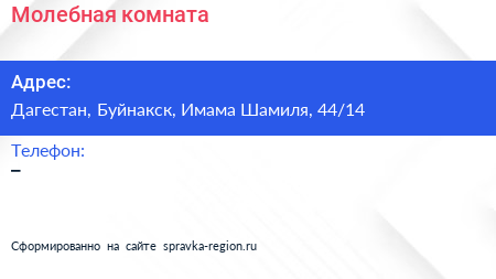 Молебная комната по адресу Дагестан, Буйнакск, Имама Шамиля, 44/14 в дальнейшем Организация, размещена в следующих категориях: