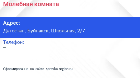 Молебная комната по адресу Дагестан, Буйнакск, Школьная, 2/7 в дальнейшем Организация, размещена в следующих категориях: