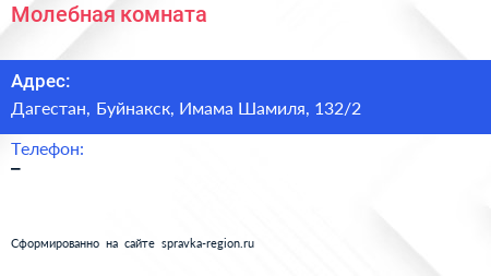 Молебная комната по адресу Дагестан, Буйнакск, Имама Шамиля, 132/2 в дальнейшем Организация, размещена в следующих категориях:
