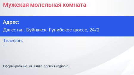 Мужская молельная комната по адресу Дагестан, Буйнакск, Гунибское шоссе, 24/2 в дальнейшем Организация, размещена в следующих категориях: