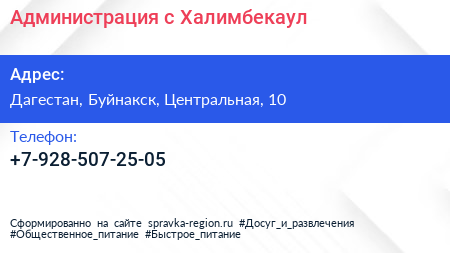 Администрация с. Халимбекаул по адресу Дагестан, Буйнакск, Центральная, 10 в дальнейшем Организация, размещена в следующих категориях: