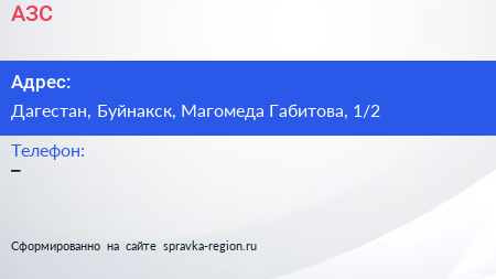 АЗС по адресу Дагестан, Буйнакск, Магомеда Габитова, 1/2 в дальнейшем Организация, размещена в следующих категориях: