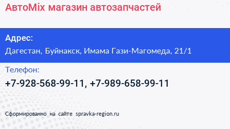АвтоMix, магазин автозапчастей по адресу Дагестан, Буйнакск, Имама Гази-Магомеда, 21/1 в дальнейшем Организация, размещена в следующих категориях: