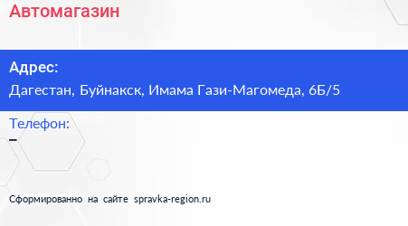Автомагазин по адресу Дагестан, Буйнакск, Имама Гази-Магомеда, 6Б/5 в дальнейшем Организация, размещена в следующих категориях:
