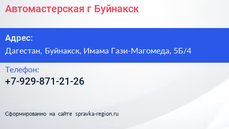 Автомастерская, г. Буйнакск по адресу Дагестан, Буйнакск, Имама Гази-Магомеда, 5Б/4 в дальнейшем Организация, размещена в следующих категориях: