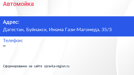 Автомойка по адресу Дагестан, Буйнакск, Имама Гази-Магомеда, 35/3 в дальнейшем Организация, размещена в следующих категориях: