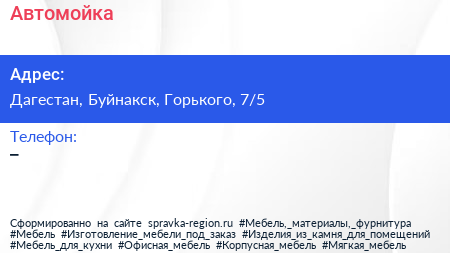 Автомойка по адресу Дагестан, Буйнакск, Горького, 7/5 в дальнейшем Организация, размещена в следующих категориях: