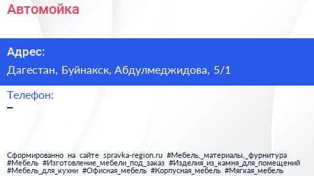 Автомойка по адресу Дагестан, Буйнакск, Абдулмеджидова, 5/1 в дальнейшем Организация, размещена в следующих категориях: