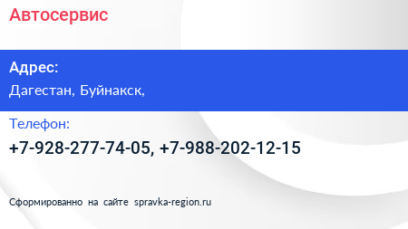 Автосервис по адресу Дагестан, Буйнакск, в дальнейшем Организация, размещена в следующих категориях: