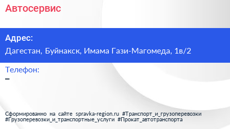 Автосервис по адресу Дагестан, Буйнакск, Имама Гази-Магомеда, 1в/2 в дальнейшем Организация, размещена в следующих категориях: