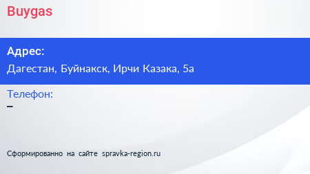 Buygas по адресу Дагестан, Буйнакск, Ирчи Казака, 5а в дальнейшем Организация, размещена в следующих категориях: