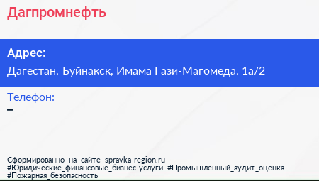 Дагпромнефть по адресу Дагестан, Буйнакск, Имама Гази-Магомеда, 1а/2 в дальнейшем Организация, размещена в следующих категориях: