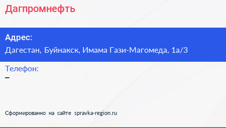 Дагпромнефть по адресу Дагестан, Буйнакск, Имама Гази-Магомеда, 1а/3 в дальнейшем Организация, размещена в следующих категориях: