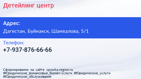 Детейлинг центр по адресу Дагестан, Буйнакск, Шамхалова, 5/1 в дальнейшем Организация, размещена в следующих категориях: