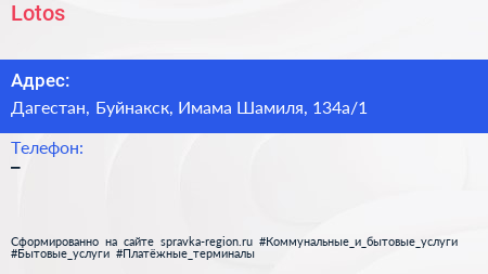Lotos по адресу Дагестан, Буйнакск, Имама Шамиля, 134а/1 в дальнейшем Организация, размещена в следующих категориях: