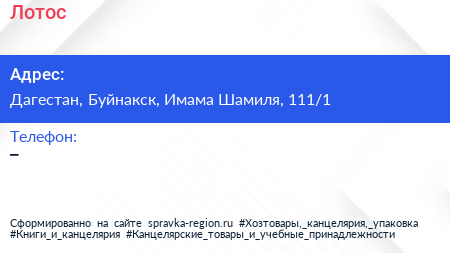 Лотос по адресу Дагестан, Буйнакск, Имама Шамиля, 111/1 в дальнейшем Организация, размещена в следующих категориях: