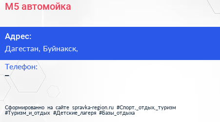 М5, автомойка по адресу Дагестан, Буйнакск, в дальнейшем Организация, размещена в следующих категориях: