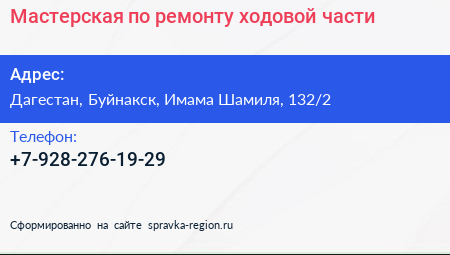 Мастерская по ремонту ходовой части по адресу Дагестан, Буйнакск, Имама Шамиля, 132/2 в дальнейшем Организация, размещена в следующих категориях: