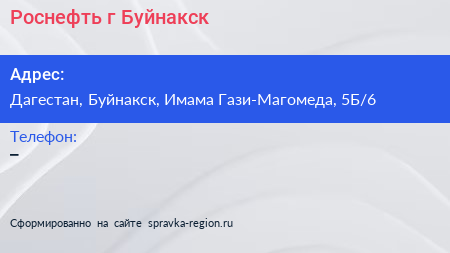 Роснефть, г. Буйнакск по адресу Дагестан, Буйнакск, Имама Гази-Магомеда, 5Б/6 в дальнейшем Организация, размещена в следующих категориях: