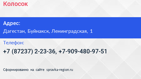 Колосок по адресу Дагестан, Буйнакск, Ленинградская, 1 в дальнейшем Организация, размещена в следующих категориях: