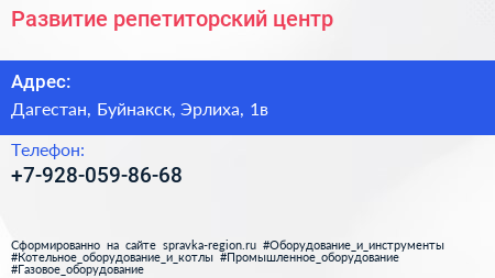 Развитие, репетиторский центр по адресу Дагестан, Буйнакск, Эрлиха, 1в в дальнейшем Организация, размещена в следующих категориях: