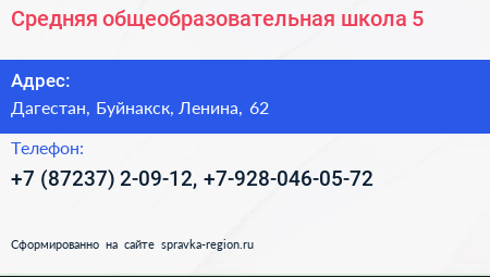 Средняя общеобразовательная школа №5 по адресу Дагестан, Буйнакск, Ленина, 62 в дальнейшем Организация, размещена в следующих категориях: