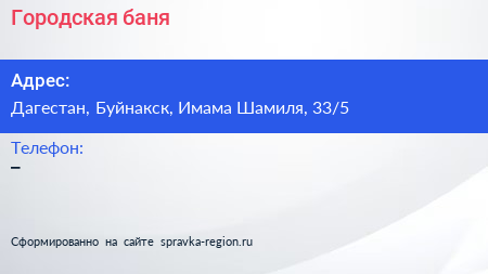 Городская баня по адресу Дагестан, Буйнакск, Имама Шамиля, 33/5 в дальнейшем Организация, размещена в следующих категориях: