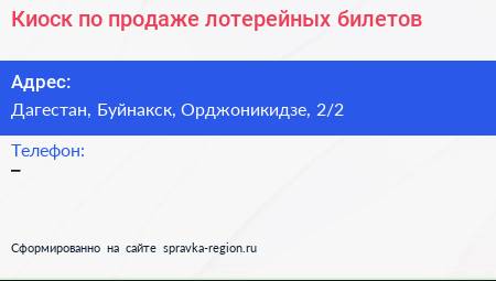 Киоск по продаже лотерейных билетов по адресу Дагестан, Буйнакск, Орджоникидзе, 2/2 в дальнейшем Организация, размещена в следующих категориях: